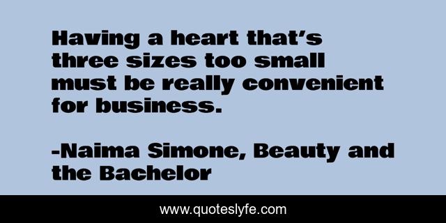 "Naima Simone, Beauty and the Bachelor Quotes." Quoteslyfe.com, 2025. Fri. 05 Dec. 2025. <https://www.quoteslyfe.com/quote/Having-a-heart-that-s-three-sizes-155042>.