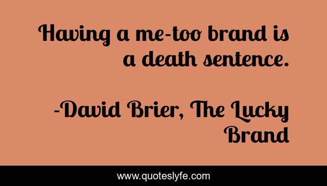 This page presents the quote "Having a me-too brand is a death sentence.". Author of this quote is David Brier, The Lucky Brand. This quote is about branding-culture, branding-expert, business, branding-marketing, branding, brand, success, strategy, david-brier,.