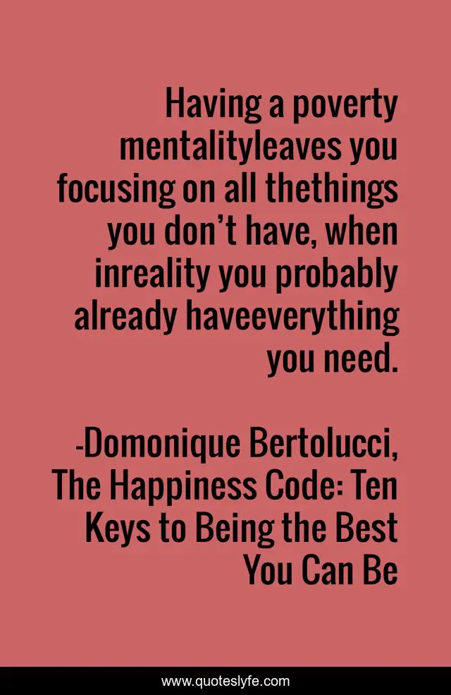 "Domonique Bertolucci, The Happiness Code: Ten Keys to Being the Best You Can Be Quotes." Quoteslyfe.com, 2025. Tue. 09 Dec. 2025. <https://www.quoteslyfe.com/quote/Having-a-poverty-mentalityleaves-you-focusing-on-215326>.