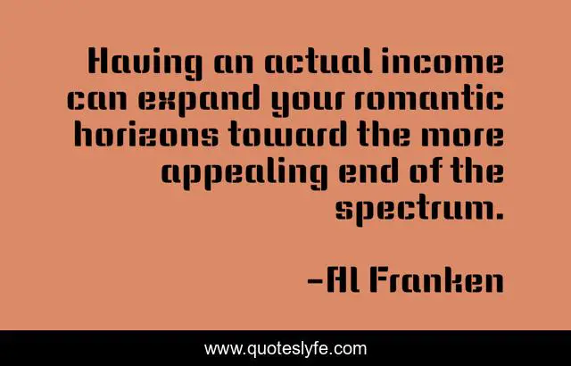 This page presents the quote "Having an actual income can expand your romantic horizons toward the more appealing end of the spectrum.". Author of this quote is Al Franken. This quote is about end, spectrum, income,.