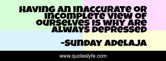 This page presents the quote "Having an inaccurate or incomplete view of ourselves is why are always depressed". Author of this quote is Sunday Adelaja. This quote is about depression, inaccurate, purpose, incomplete, ignorance,.