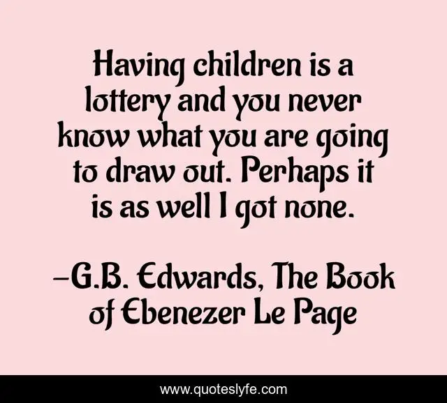 This page presents the quote "Having children is a lottery and you never know what you are going to draw out. Perhaps it is as well I got none.". Author of this quote is G.B. Edwards, The Book of Ebenezer Le Page. .