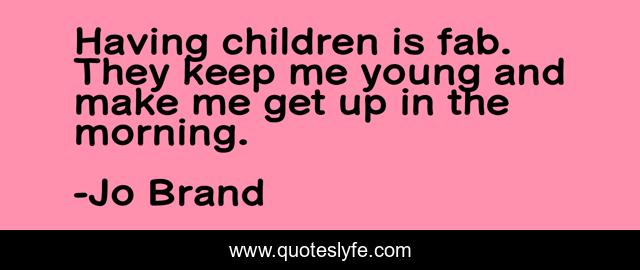 This page presents the quote "Having children is fab. They keep me young and make me get up in the morning.". Author of this quote is Jo Brand. This quote is about me, children, young,.