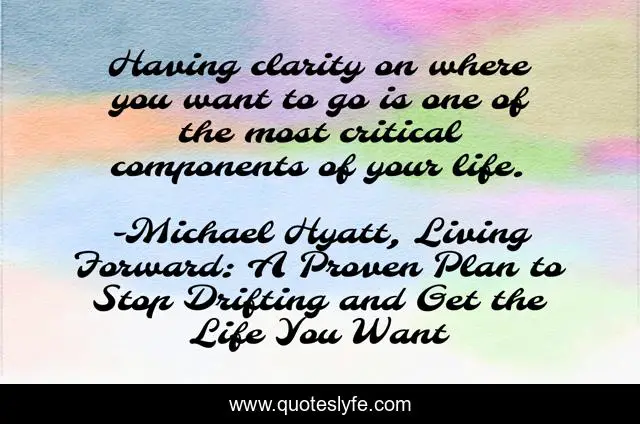 "Michael Hyatt, Living Forward: A Proven Plan to Stop Drifting and Get the Life You Want Quotes." Quoteslyfe.com, 2025. Mon. 08 Dec. 2025. <https://www.quoteslyfe.com/quote/Having-clarity-on-where-you-want-to-140642>.