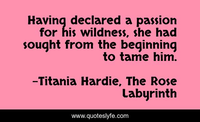 "Titania Hardie, The Rose Labyrinth Quotes." Quoteslyfe.com, 2025. Fri. 05 Dec. 2025. <https://www.quoteslyfe.com/quote/Having-declared-a-passion-for-his-wildness-18603>.