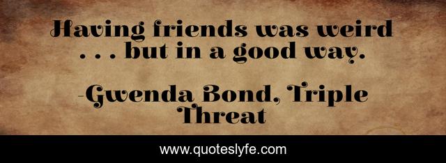 "Gwenda Bond, Triple Threat Quotes." Quoteslyfe.com, 2025. Fri. 05 Dec. 2025. <https://www.quoteslyfe.com/quote/Having-friends-was-weird-but-in-a-17286>.