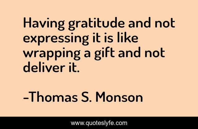 This page presents the quote "Having gratitude and not expressing it is like wrapping a gift and not deliver it.". Author of this quote is Thomas S. Monson. .