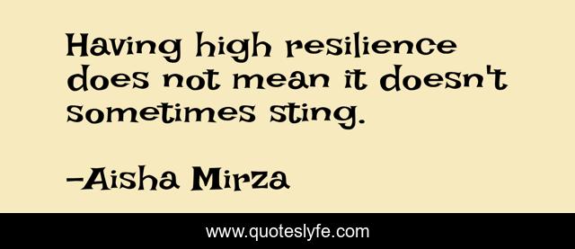 This page presents the quote "Having high resilience does not mean it doesn't sometimes sting.". Author of this quote is Aisha Mirza. This quote is about life-lesson, resilience, self-help,.