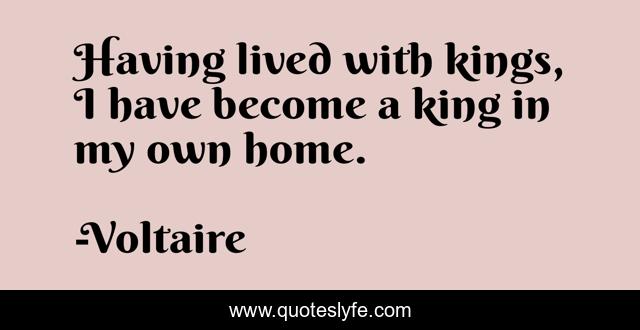 This page presents the quote "Having lived with kings, I have become a king in my own home.". Author of this quote is Voltaire. .