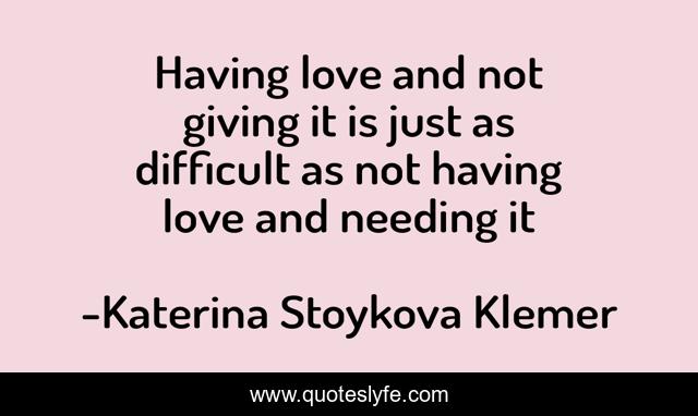 "Katerina Stoykova Klemer Quotes." Quoteslyfe.com, 2025. Fri. 05 Dec. 2025. <https://www.quoteslyfe.com/quote/Having-love-and-not-giving-it-is-236739>.