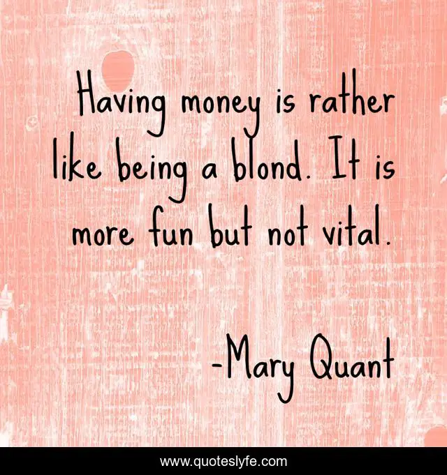 This page presents the quote "Having money is rather like being a blond. It is more fun but not vital.". Author of this quote is Mary Quant. This quote is about fun, being, like,.