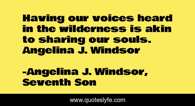 "Angelina J. Windsor, Seventh Son Quotes." Quoteslyfe.com, 2025. Sun. 07 Dec. 2025. <https://www.quoteslyfe.com/quote/Having-our-voices-heard-in-the-wilderness-213701>.