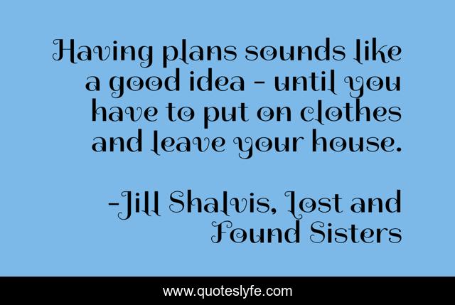 This page presents the quote "Having plans sounds like a good idea - until you have to put on clothes and leave your house.". Author of this quote is Jill Shalvis, Lost and Found Sisters. This quote is about humorous, scheduling, planning, social-life,.