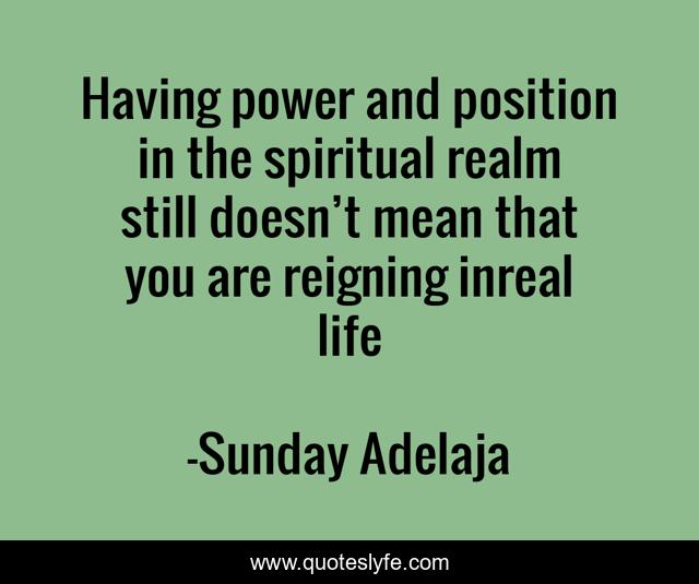This page presents the quote "Having power and position in the spiritual realm still doesn’t mean that you are reigning inreal life". Author of this quote is Sunday Adelaja. This quote is about position, life, spiritual, power,.