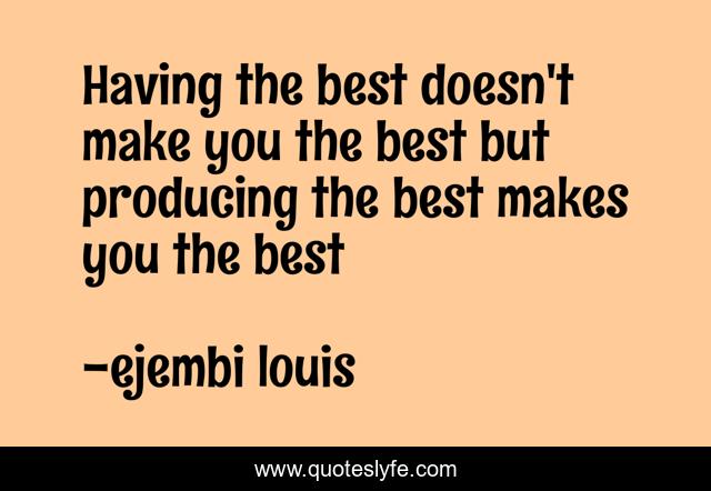 This page presents the quote "Having the best doesn't make you the best but producing the best makes you the best". Author of this quote is ejembi louis. This quote is about enthusiasm, inspirational,.