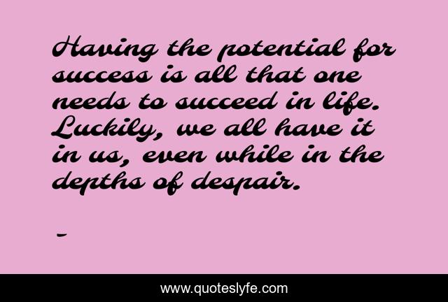 This page presents the quote "Having the potential for success is all that one needs to succeed in life. Luckily, we all have it in us, even while in the depths of despair.". Author of this quote is . This quote is about being-in-despair, the-depths-of-despair, succeeding-in-life, edmond-mbiaka, succeed, have-the-potential-for-success,.
