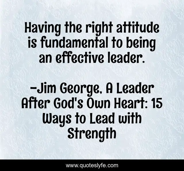 This page presents the quote "Having the right attitude is fundamental to being an effective leader.". Author of this quote is Jim George, A Leader After God's Own Heart: 15 Ways to Lead with Strength. This quote is about heart, right, christian, effective, god, effective-leadership, behaviour, attitude, husband,.