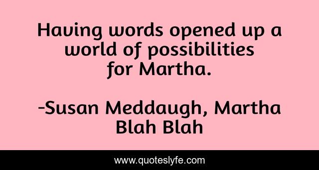 This page presents the quote "Having words opened up a world of possibilities for Martha.". Author of this quote is Susan Meddaugh, Martha Blah Blah. .