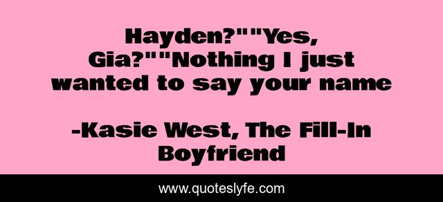 This page presents the quote "Hayden?""Yes, Gia?""Nothing I just wanted to say your name". Author of this quote is Kasie West, The Fill-In Boyfriend. This quote is about cute, comedy, love, affection, funny,.