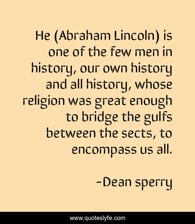 "Dean sperry Quotes." Quoteslyfe.com, 2025. Mon. 08 Dec. 2025. <https://www.quoteslyfe.com/quote/He-Abraham-Lincoln-is-one-of-the-223363>.