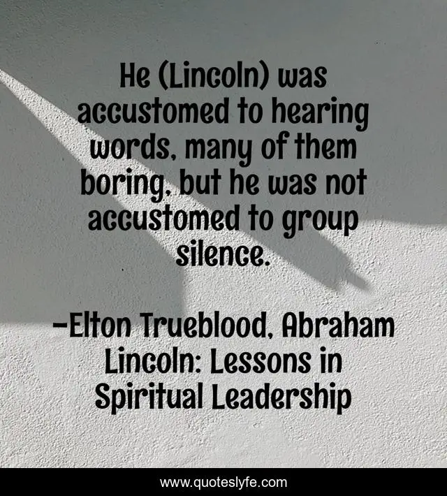"Elton Trueblood, Abraham Lincoln: Lessons in Spiritual Leadership Quotes." Quoteslyfe.com, 2025. Tue. 09 Dec. 2025. <https://www.quoteslyfe.com/quote/He-Lincoln-was-accustomed-to-hearing-words-115285>.