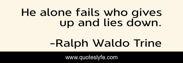 This page presents the quote "He alone fails who gives up and lies down.". Author of this quote is Ralph Waldo Trine. This quote is about failures, mistakes,.