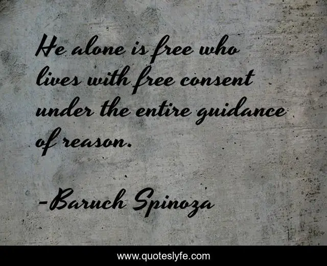 This page presents the quote "He alone is free who lives with free consent under the entire guidance of reason.". Author of this quote is Baruch Spinoza. This quote is about reason, guidance, free,.