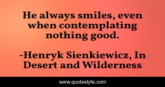 This page presents the quote "He always smiles, even when contemplating nothing good.". Author of this quote is Henryk Sienkiewicz, In Desert and Wilderness. This quote is about falseness, evil, trickery,.