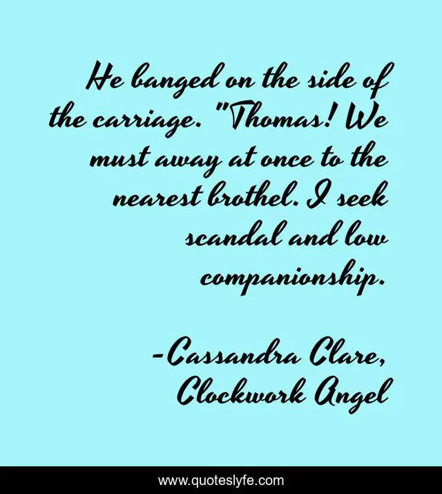"Cassandra Clare, Clockwork Angel Quotes." Quoteslyfe.com, 2025. Mon. 08 Dec. 2025. <https://www.quoteslyfe.com/quote/He-banged-on-the-side-of-the-227633>.