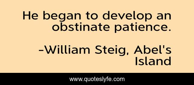 This page presents the quote "He began to develop an obstinate patience.". Author of this quote is William Steig, Abel's Island. .
