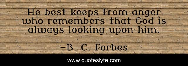 This page presents the quote "He best keeps from anger who remembers that God is always looking upon him.". Author of this quote is B. C. Forbes. This quote is about looking, god, best,.