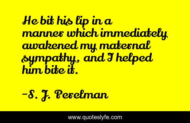 This page presents the quote "He bit his lip in a manner which immediately awakened my maternal sympathy, and I helped him bite it.". Author of this quote is S. J. Perelman. This quote is about bite, him, which,.