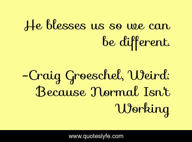 This page presents the quote "He blesses us so we can be different.". Author of this quote is Craig Groeschel, Weird: Because Normal Isn't Working. This quote is about be, different, god, we, us, so, can, blesses, he,.