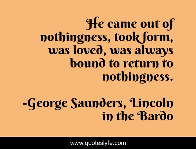 "George Saunders, Lincoln in the Bardo Quotes." Quoteslyfe.com, 2025. Sat. 06 Dec. 2025. <https://www.quoteslyfe.com/quote/He-came-out-of-nothingness-took-form-99493>.