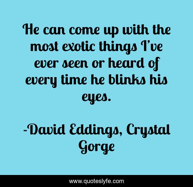 This page presents the quote "He can come up with the most exotic things I’ve ever seen or heard of every time he blinks his eyes.". Author of this quote is David Eddings, Crystal Gorge. This quote is about exotic, creativity, ideas, infp,.