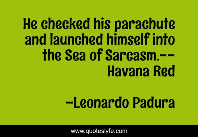 This page presents the quote "He checked his parachute and launched himself into the Sea of Sarcasm.--Havana Red". Author of this quote is Leonardo Padura. .
