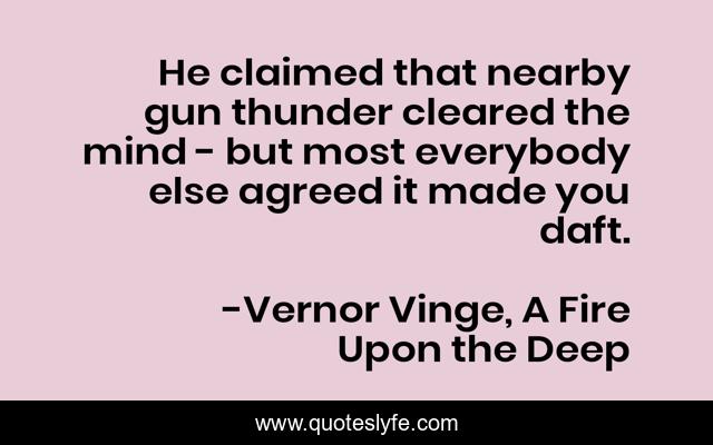 "Vernor Vinge, A Fire Upon the Deep Quotes." Quoteslyfe.com, 2025. Fri. 05 Dec. 2025. <https://www.quoteslyfe.com/quote/He-claimed-that-nearby-gun-thunder-cleared-52333>.