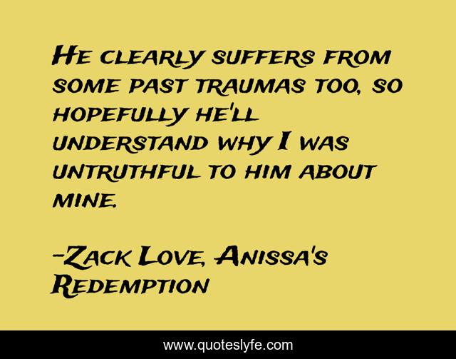 "Zack Love, Anissa's Redemption Quotes." Quoteslyfe.com, 2025. Mon. 08 Dec. 2025. <https://www.quoteslyfe.com/quote/He-clearly-suffers-from-some-past-traumas-13676>.