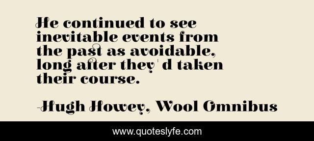 "Hugh Howey, Wool Omnibus Quotes." Quoteslyfe.com, 2025. Fri. 05 Dec. 2025. <https://www.quoteslyfe.com/quote/He-continued-to-see-inevitable-events-from-161337>.