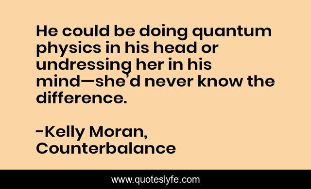This page presents the quote "He could be doing quantum physics in his head or undressing her in his mind—she’d never know the difference.". Author of this quote is Kelly Moran, Counterbalance. This quote is about attraction, humor, romance-novels,.
