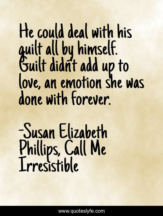 "Susan Elizabeth Phillips, Call Me Irresistible Quotes." Quoteslyfe.com, 2025. Mon. 08 Dec. 2025. <https://www.quoteslyfe.com/quote/He-could-deal-with-his-guilt-all-223401>.