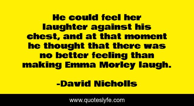 This page presents the quote "He could feel her laughter against his chest, and at that moment he thought that there was no better feeling than making Emma Morley laugh.". Author of this quote is David Nicholls. .