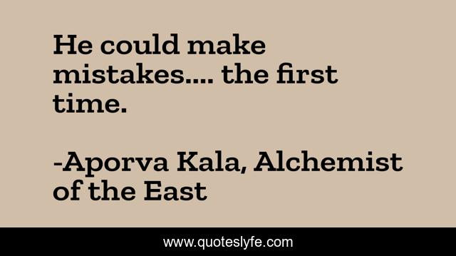 "Aporva Kala, Alchemist of the East Quotes." Quoteslyfe.com, 2025. Fri. 05 Dec. 2025. <https://www.quoteslyfe.com/quote/He-could-make-mistakes-the-first-time-98490>.