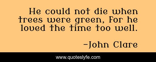 This page presents the quote "He could not die when trees were green, for he loved the time too well.". Author of this quote is John Clare. This quote is about green, trees, time,.