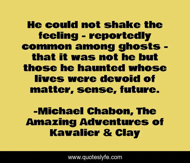This page presents the quote "He could not shake the feeling - reportedly common among ghosts - that it was not he but those he haunted whose lives were devoid of matter, sense, future.". Author of this quote is Michael Chabon, The Amazing Adventures of Kavalier & Clay. .