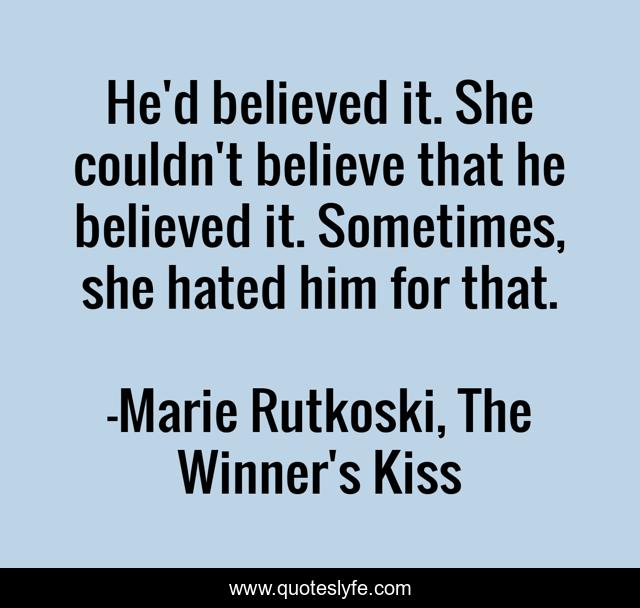 "Marie Rutkoski, The Winner's Kiss Quotes." Quoteslyfe.com, 2025. Sun. 07 Dec. 2025. <https://www.quoteslyfe.com/quote/He-d-believed-it-She-couldn-t-160213>.
