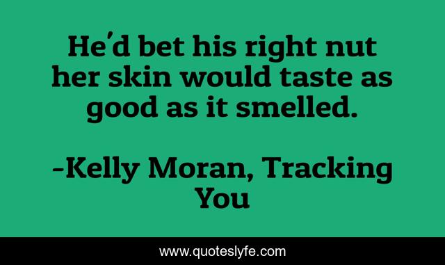 This page presents the quote "He'd bet his right nut her skin would taste as good as it smelled.". Author of this quote is Kelly Moran, Tracking You. This quote is about desire, humor, romcom,.
