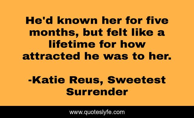 This page presents the quote "He'd known her for five months, but felt like a lifetime for how attracted he was to her.". Author of this quote is Katie Reus, Sweetest Surrender. .