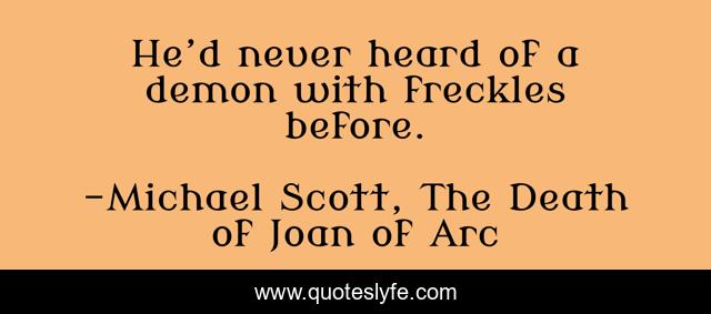 This page presents the quote "He’d never heard of a demon with freckles before.". Author of this quote is Michael Scott, The Death of Joan of Arc. This quote is about freckles, demons,.