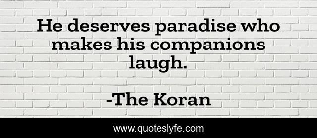 This page presents the quote "He deserves paradise who makes his companions laugh.". Author of this quote is The Koran. This quote is about humorists, humour,.